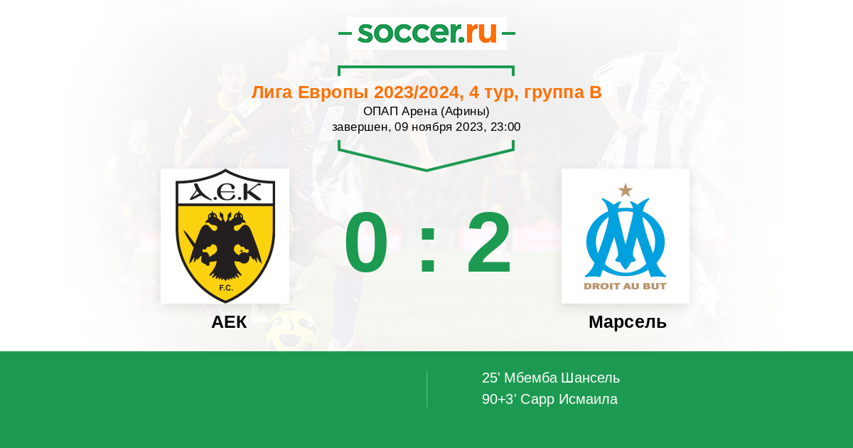 Протокол матча АЕК против Марсель