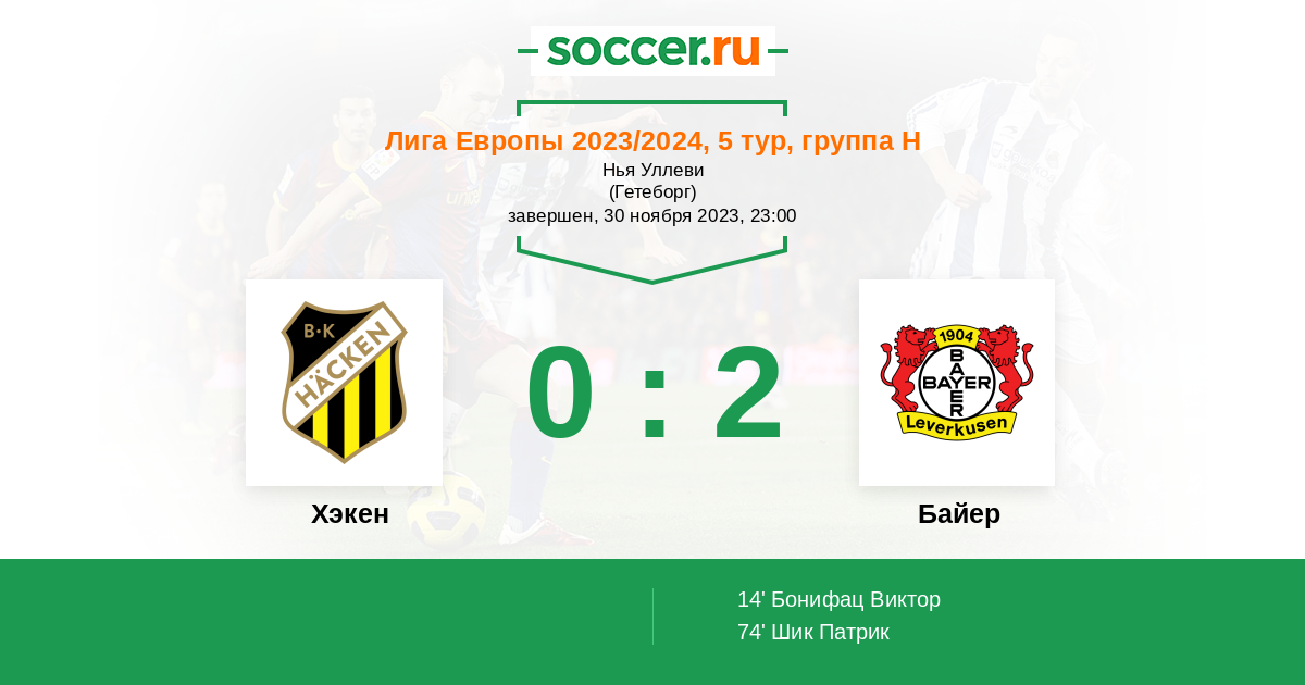 Протокол матча Хэкен против Байер