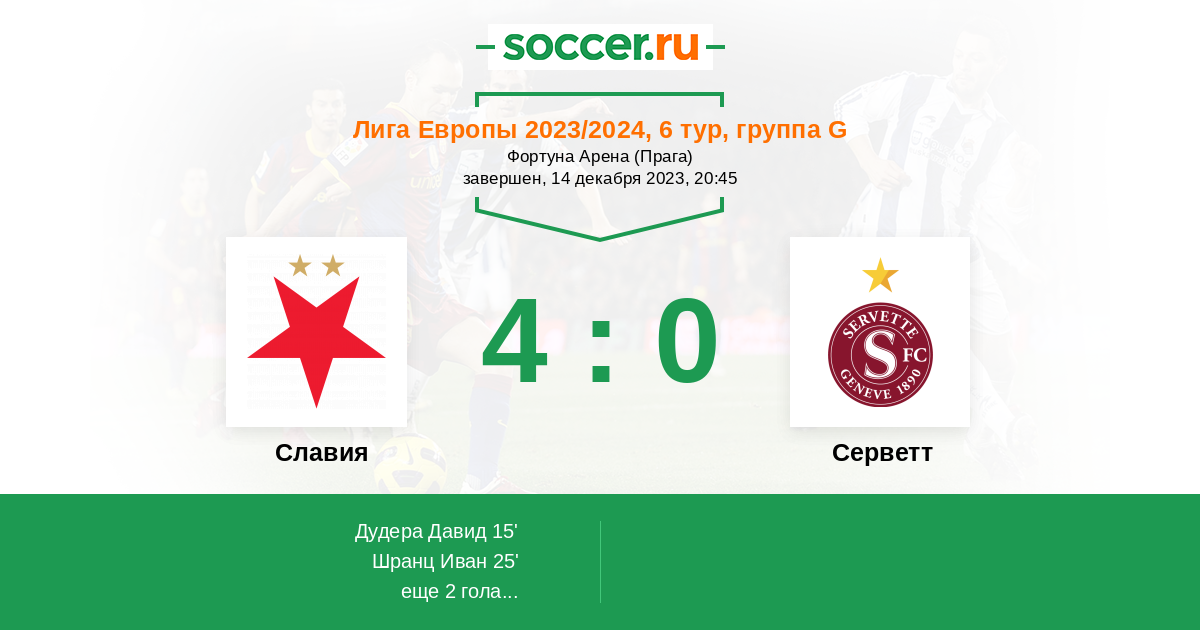 Протокол матча Славия против Серветт