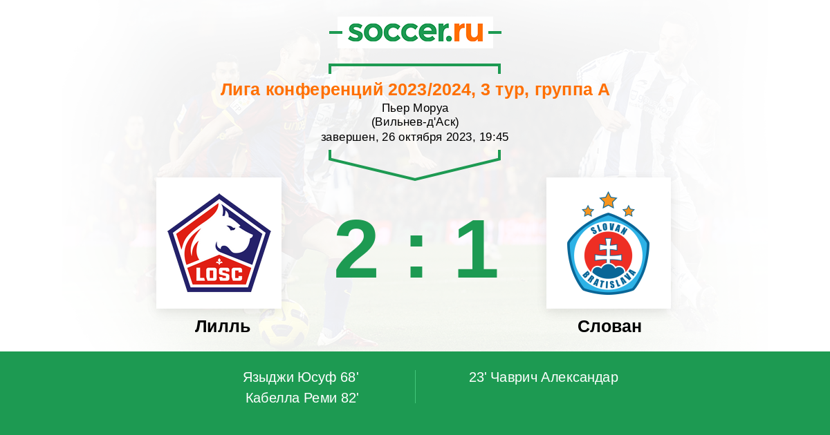 Протокол матча Лилль против Слован