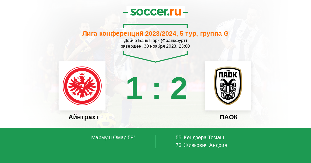Протокол матча Айнтрахт против ПАОК