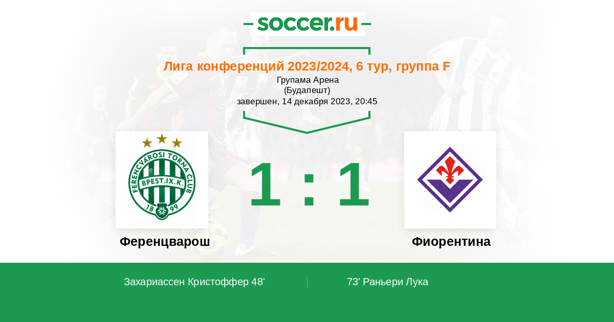 Протокол матча Ференцварош против Фиорентина