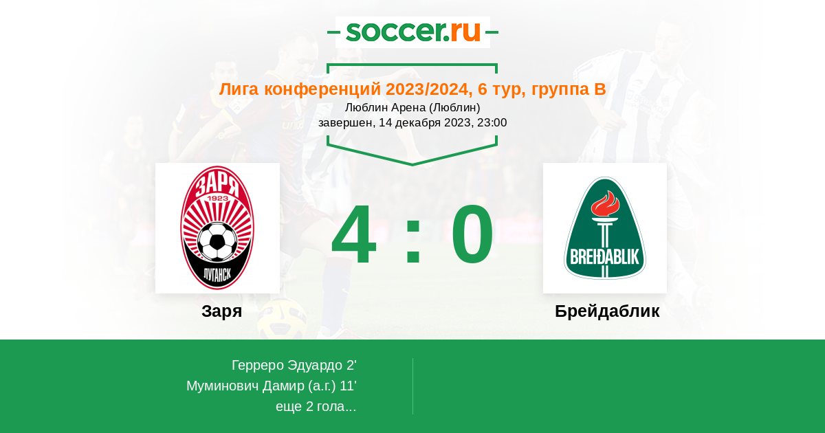 Протокол матча Заря против Брейдаблик