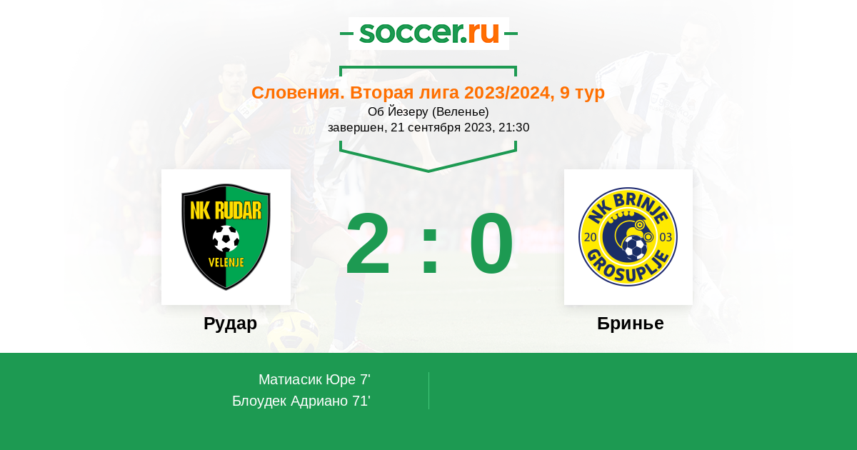 Протокол матча Рудар против Бринье