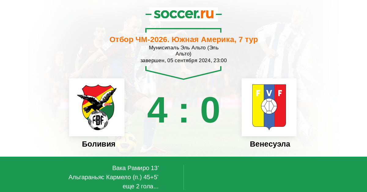На боливийском поле в экстремальном высокогорье легко не бывает даже южноамериканским грандам, к которым сборная Венесуэлы явно не относится. По этой причине даже предположить, что гости наколотят более трёх мячей как-то не получается