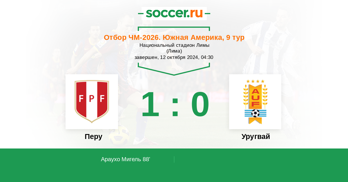 В предстоящем матче 9 - го тура отбора на ЧМ по футболу 2026 в зоне Южной Америки между командами сборной Перу и сборной Уругвая, фаворитом на победу является команда гостей сборная Уругвая.