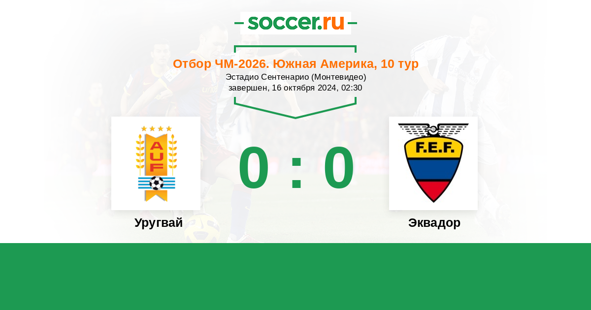 Эквадор обладает одной из самых надежных оборон во всем латиноамериканском отборе. За девять матчей команда пропустила всего четыре мяча. С большой долей вероятности эквадорцы сыграют низким блоком, который будет очень тяжело вскрыть уругвайцам.