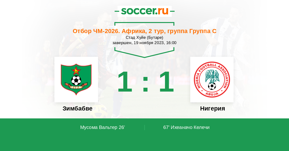 Протокол матча Зимбабве против Нигерия