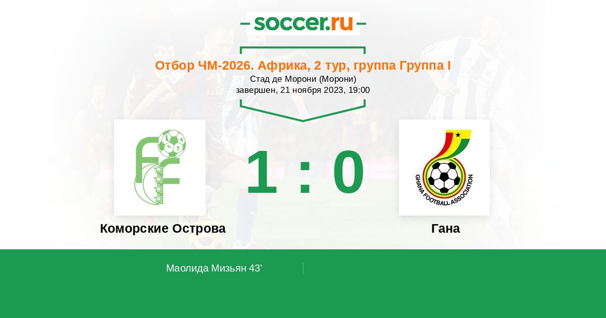 Протокол матча Коморские Острова против Гана