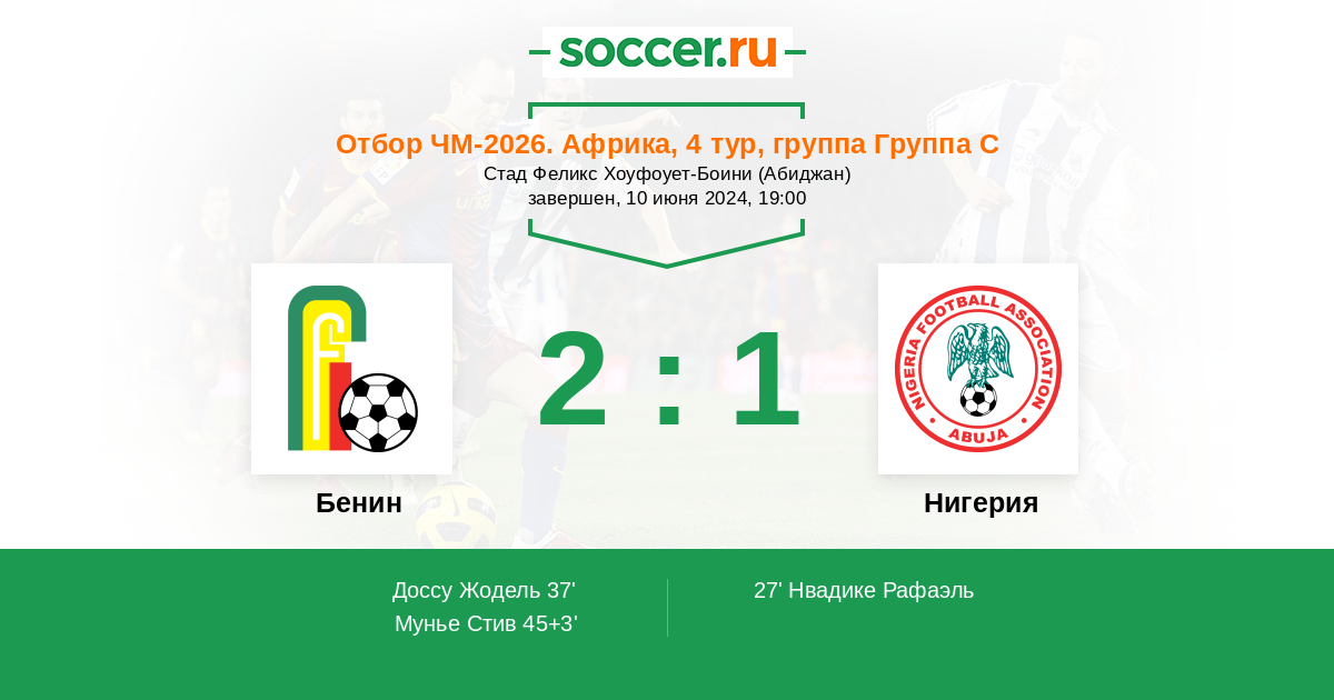Протокол матча Бенин против Нигерия