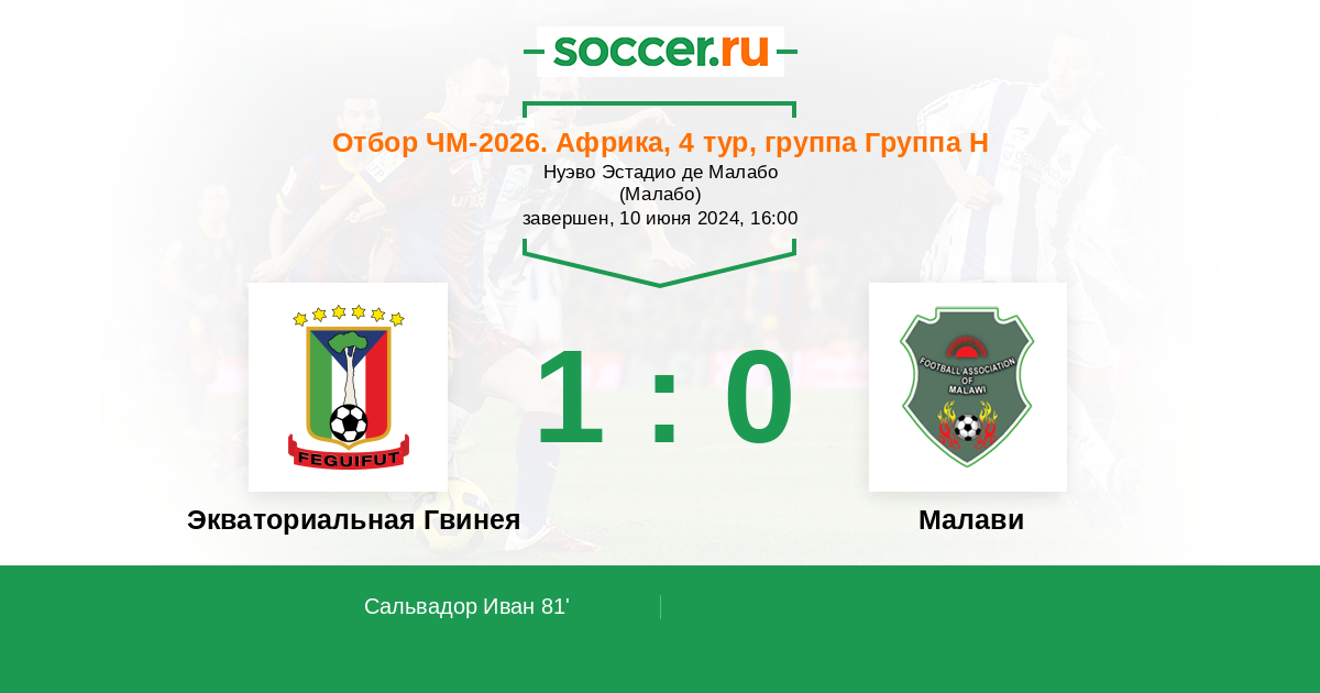 Протокол матча Экваториальная Гвинея против Малави