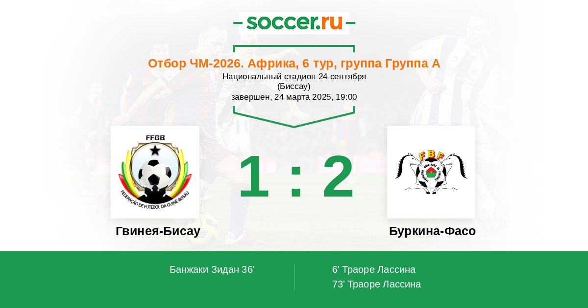 Протокол матча Гвинея-Бисау против Буркина-Фасо