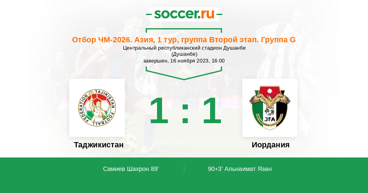 Протокол матча Таджикистан против Иордания