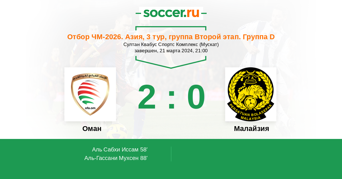 58' (1:0) Аль Сабхи Иссам (7) (Али Аль Бусаиди (17))