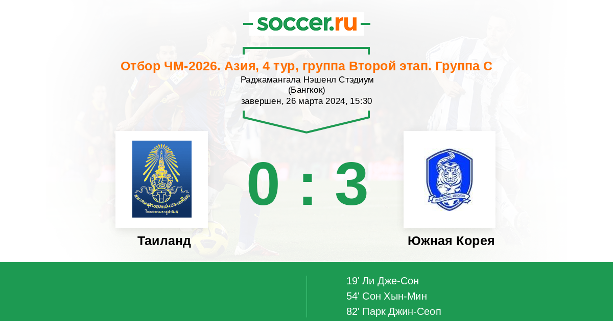 54' (0:2) Сон Хын-Мин (7) (Ли Канджин (18))