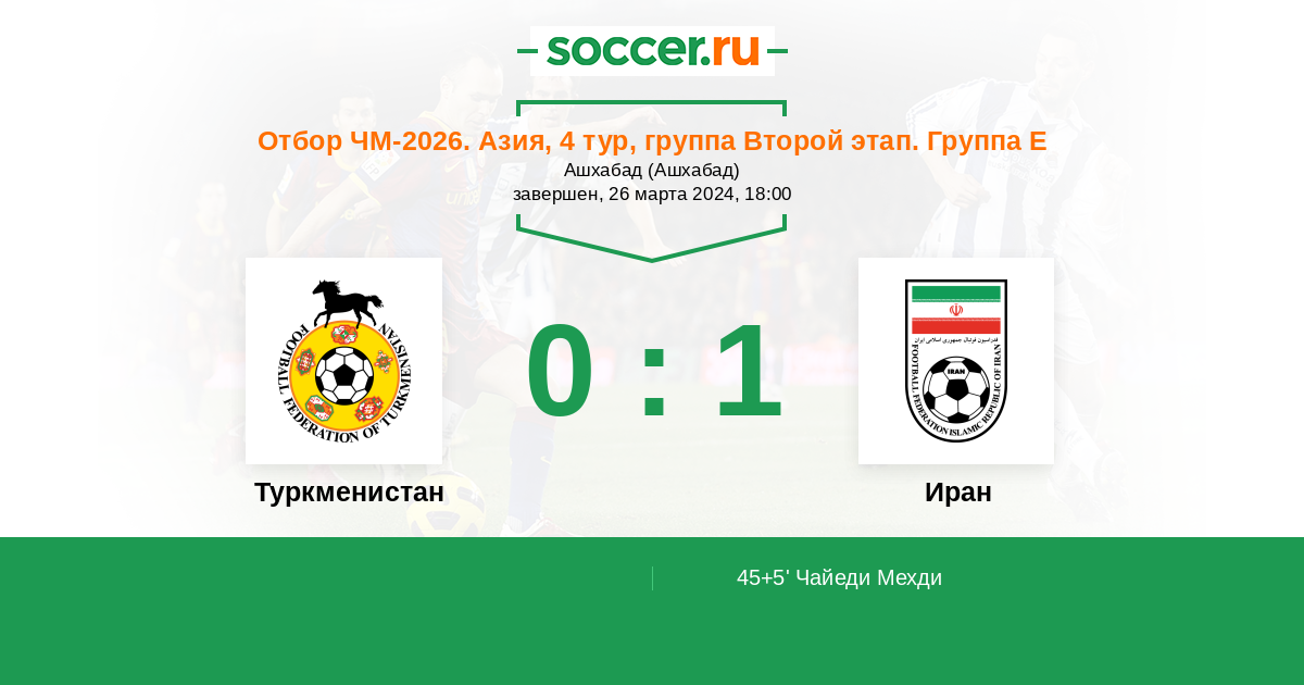 Протокол матча Туркменистан против Иран