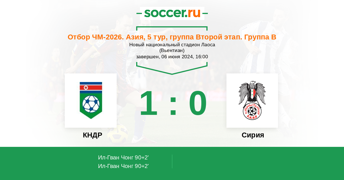 Протокол матча КНДР против Сирия