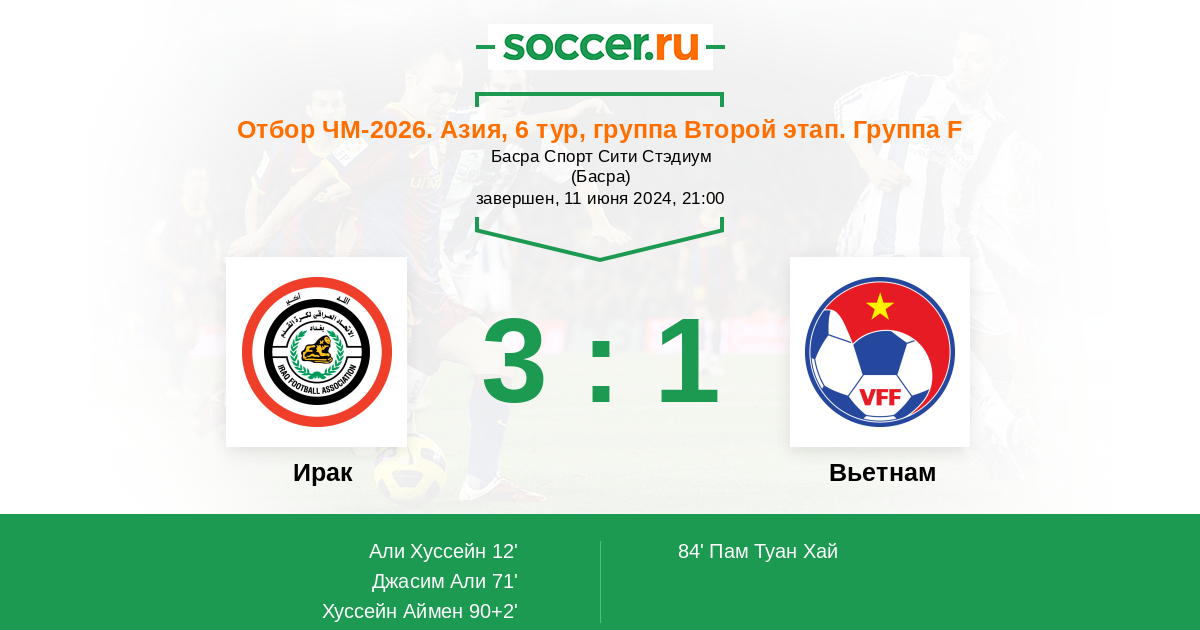 Пять матчей – пять побед! Ирак не почувствовал своих соперников по группе и уже получил путевку в следующий этап. А вот Вьетнаму еще есть за что бороться, но одержать победу в этом поединке будет крайне сложно. Удастся ли Вьетнаму совершить чудо?
