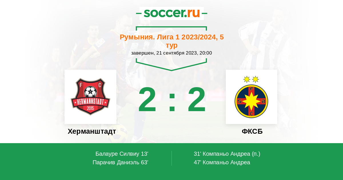 Протокол матча Херманштадт против ФКСБ