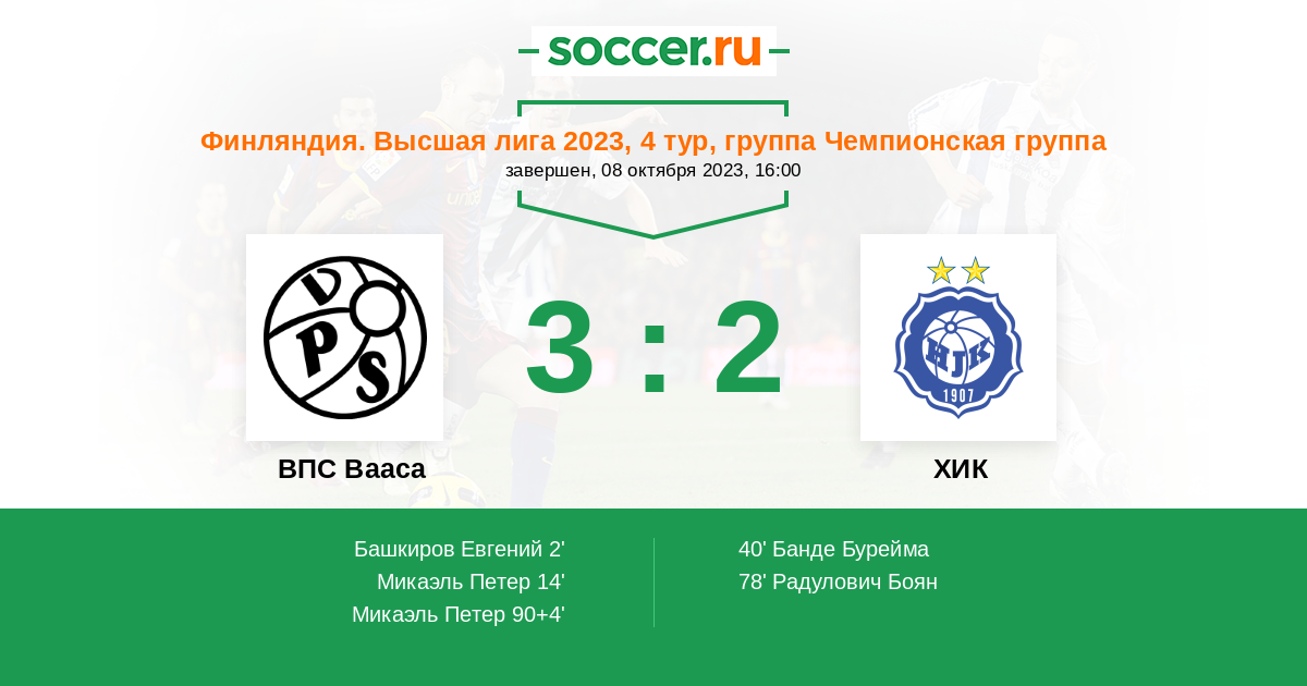 Протокол матча ВПС Вааса против ХИК
