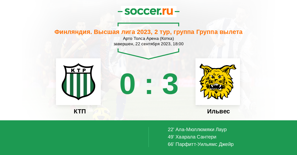 22' (0:1) Ала-Мюллюмяки Лаур (15) (Араухо Рикардо (3))