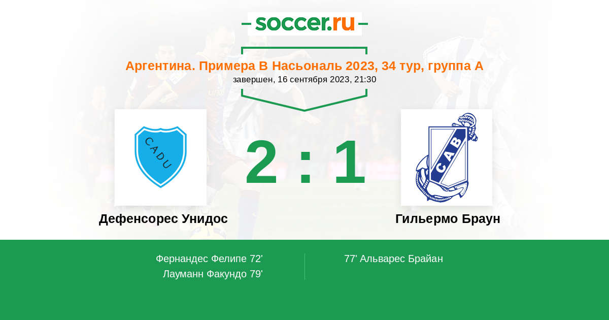 Протокол матча Дефенсорес Унидос против Гильермо Браун