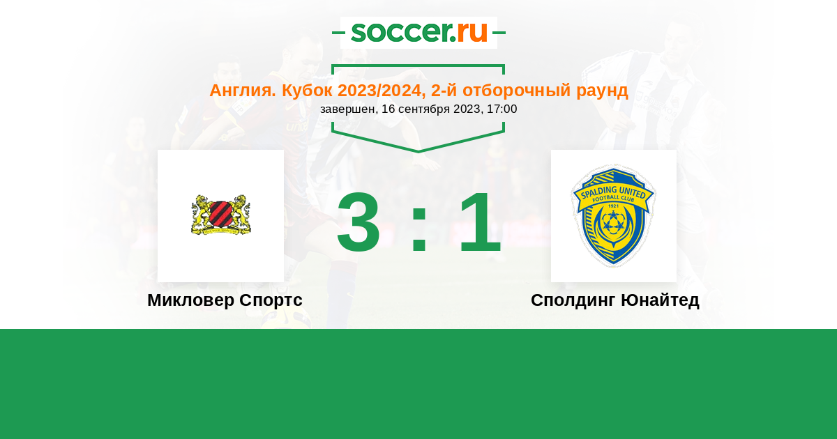 Матч Микловер Спортс против Сполдинг Юнайтед