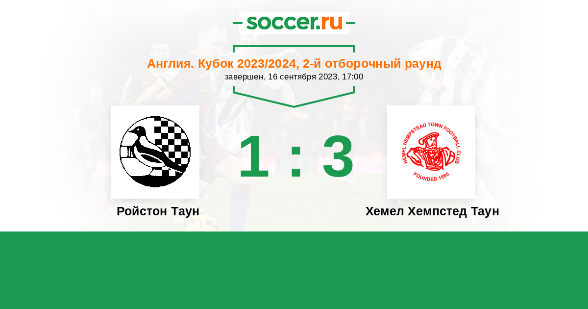 История матча Ройстон Таун против Хемел Хемпстед Таун