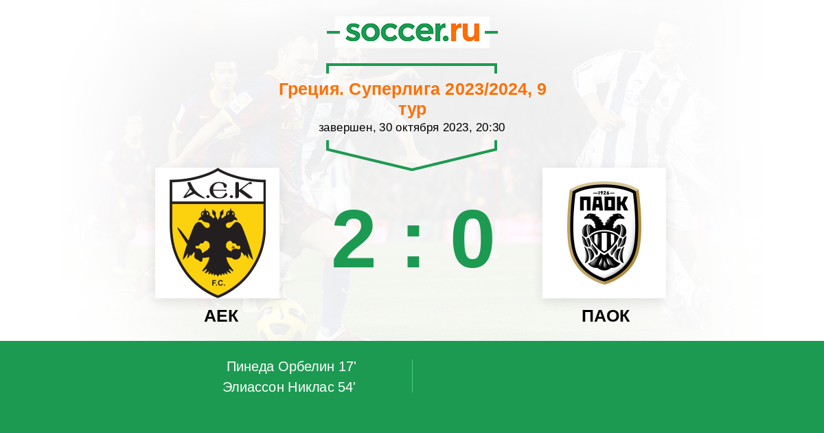 17' (1:0) Пинеда Орбелин (13) (Манталос Петрос (20))