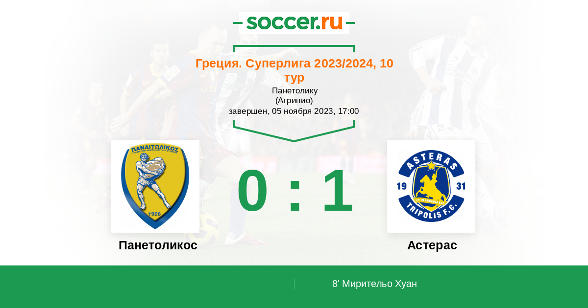 Протокол матча Панетоликос против Астерас