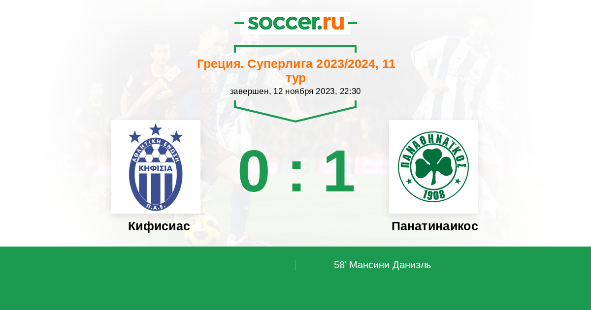 Протокол матча Кифисиас против Панатинаикос
