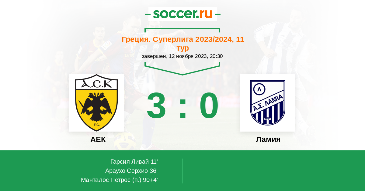 Протокол матча АЕК против Ламия