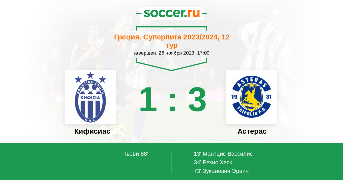 Протокол матча Кифисиас против Астерас