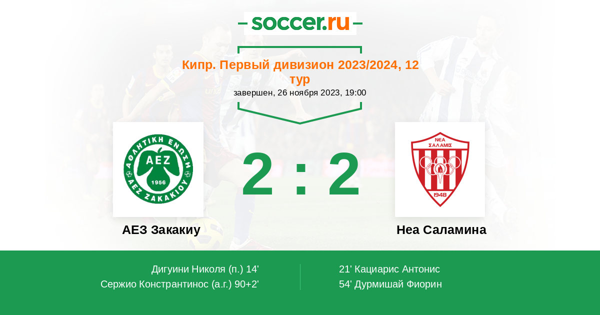Протокол матча АЕЗ Закакиу против Неа Саламина
