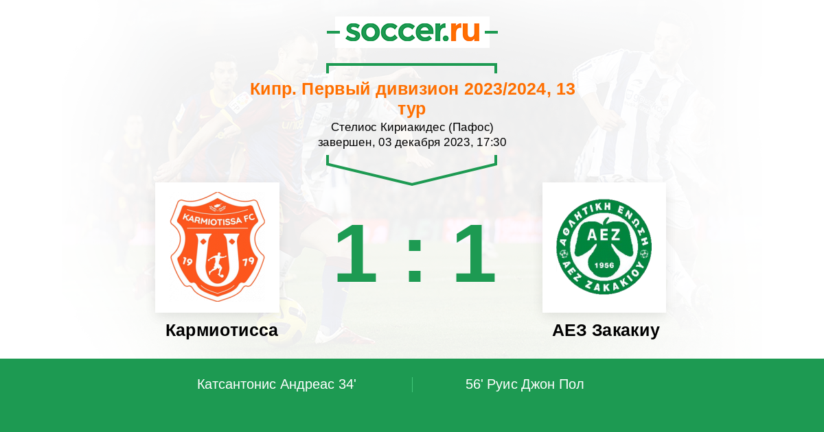 Протокол матча Кармиотисса против АЕЗ Закакиу