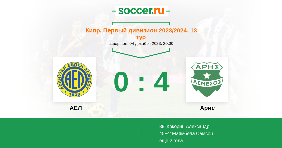 Протокол матча АЕЛ против Арис