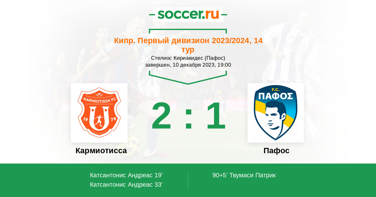 Протокол матча Кармиотисса против Пафос