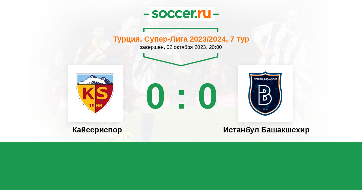 Протокол матча Кайсериспор против Истанбул Башакшехир