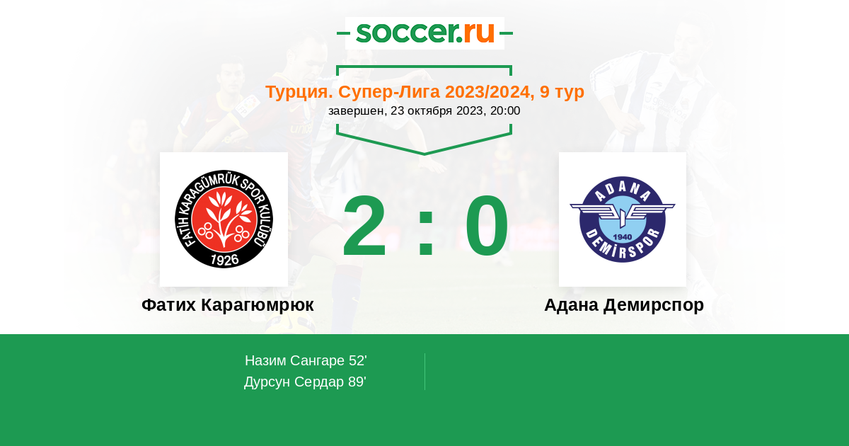 Протокол матча Фатих Карагюмрюк против Адана Демирспор