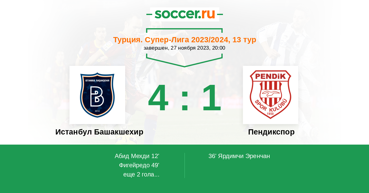 Протокол матча Истанбул Башакшехир против Пендикспор
