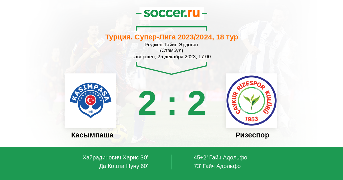 Гол45+2' (1:1) Гайч Адольфо (9) (Османоглу Синан (18))