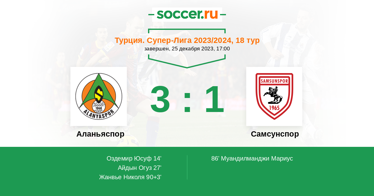 Протокол матча Аланьяспор против Самсунспор
