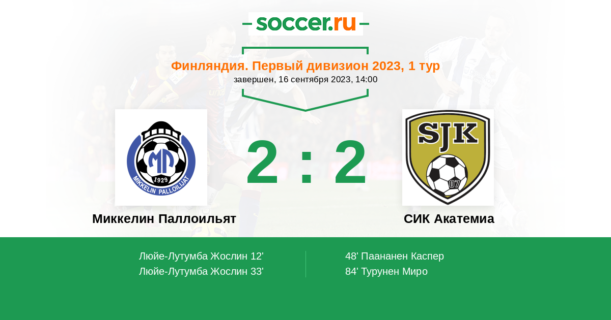 Протокол матча Миккелин Паллоильят против СИК Акатемиа