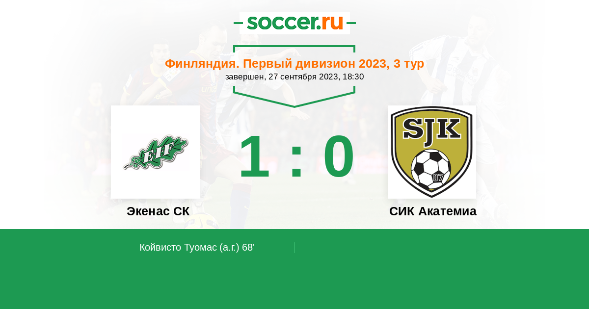 68' (1:0) Автогол Койвисто Туомас (16)