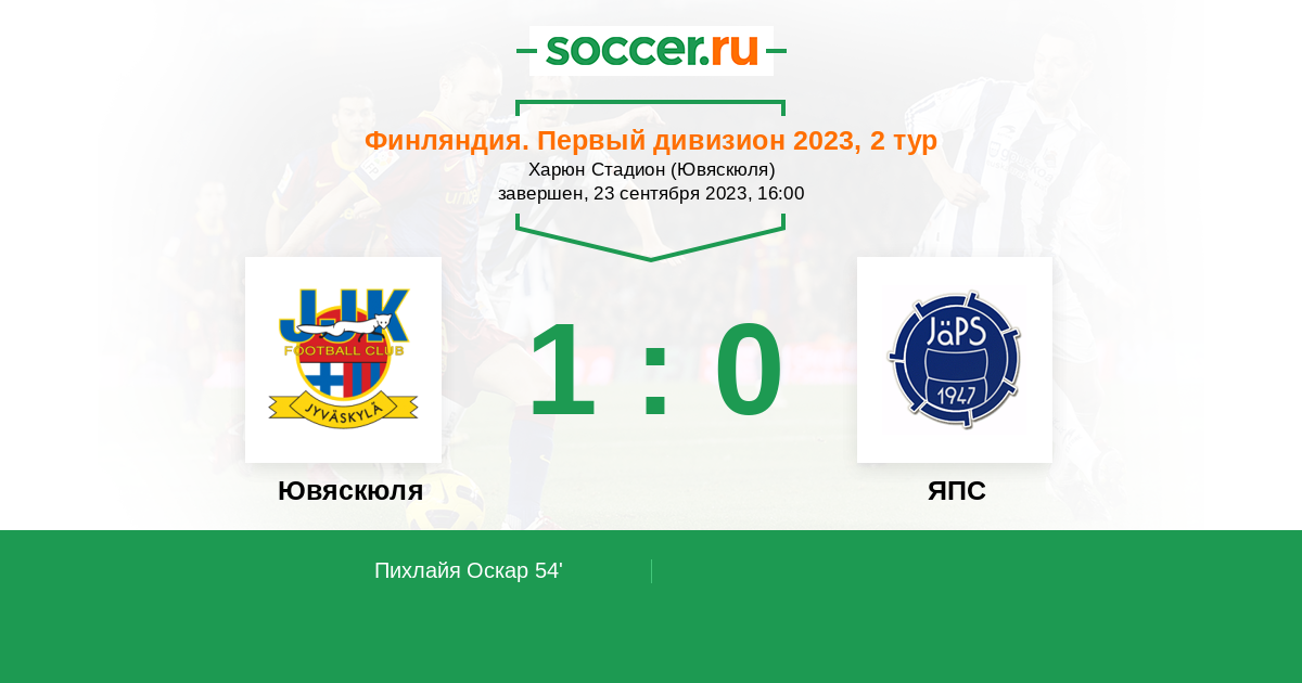 Протокол матча Ювяскюля против ЯПС