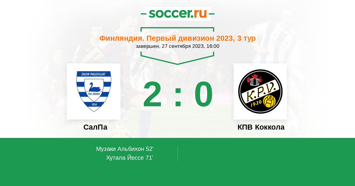 Протокол матча СалПа против КПВ Коккола