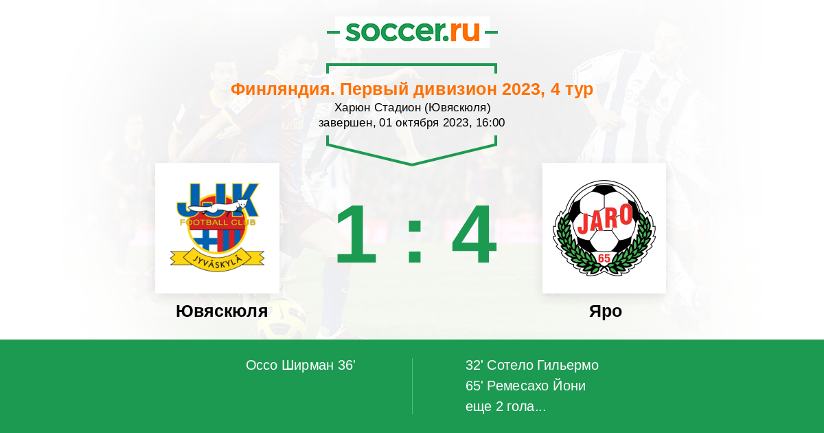 Протокол матча Ювяскюля против Яро