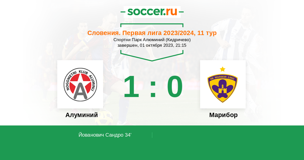 Протокол матча Алуминий против Марибор