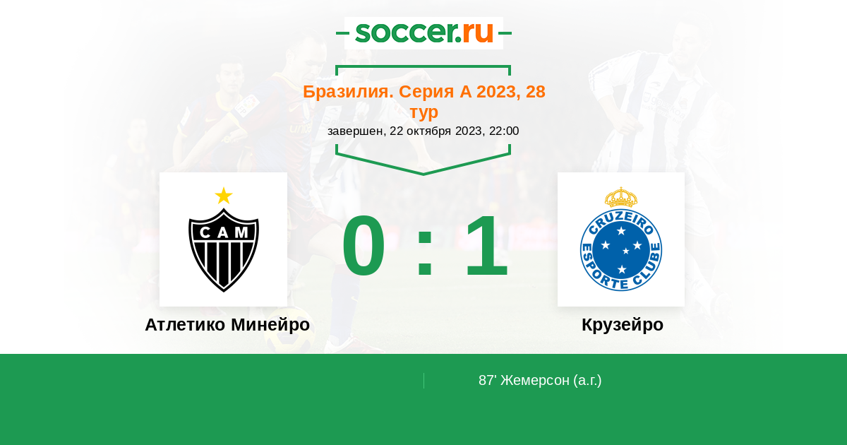 Протокол матча Атлетико Минейро против Крузейро