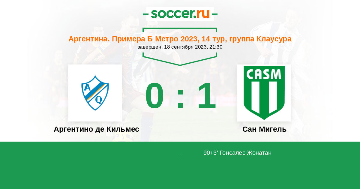 Протокол матча Аргентино де Кильмес против Сан Мигель